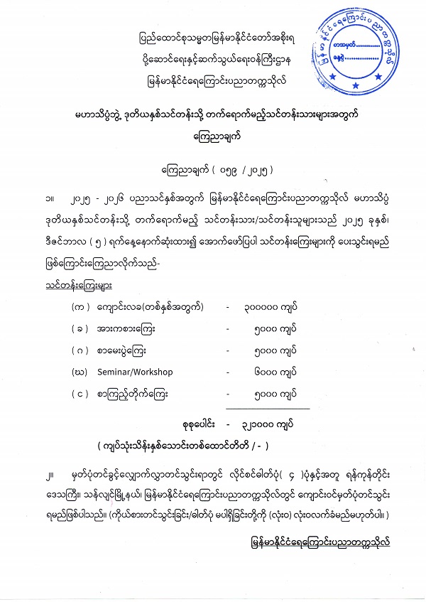 81 မြန်မာနိုင်ငံရေကြောင်းပညာတက္ကသိုလ် ၂၀၁၉ - ၂၀၂၀ ပညာသင်နှစ်၏ ဘွဲ့ကြိုသင်တန်းများ ဖွင့်လှစ်မည်ဖြစ်ကြောင်းကြေညာခြင်း 4/6/2022 3:17:51 AM News