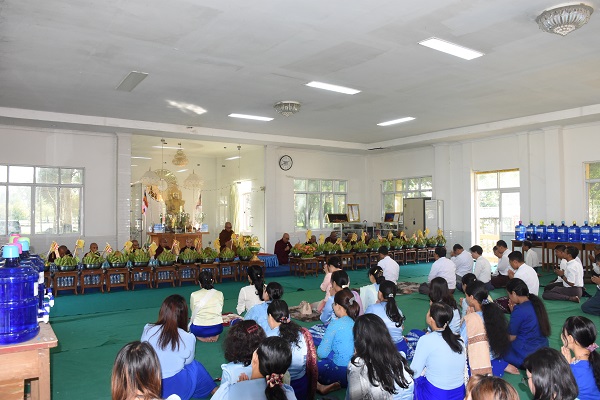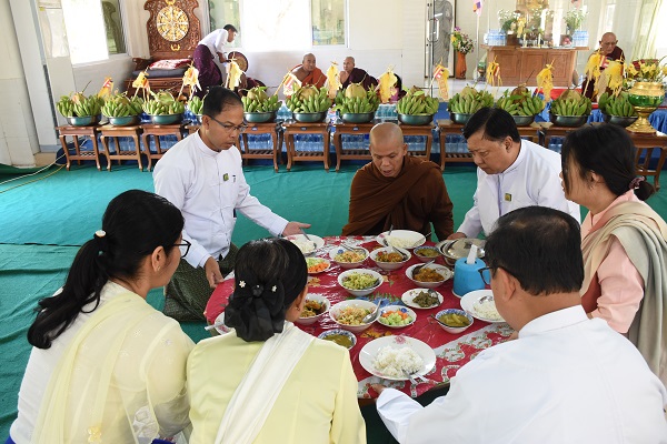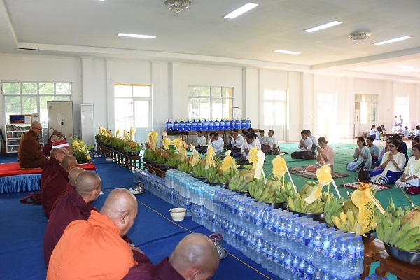After delivering a sermon on the Pathana Dhamma, the sayadaws and members of the sangha, together with the congregation, jointly recited the Patthana Paccuddessa three times. Then, the recitation of the Five Volumes of the Pathanna by the sangha. Subsequently, day meals were  offered to the sangha, and hospitality was extended to the attendees with refreshments.